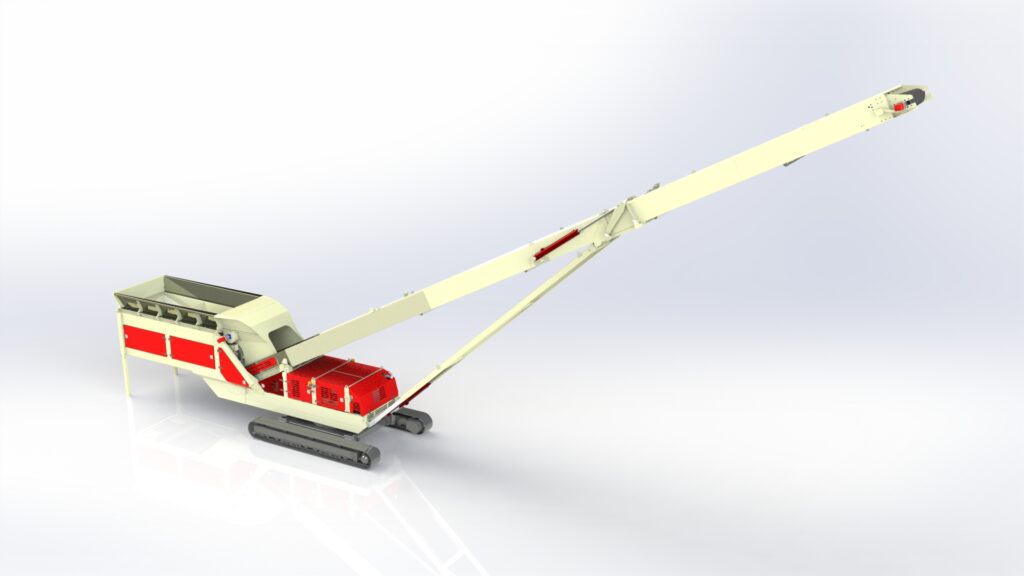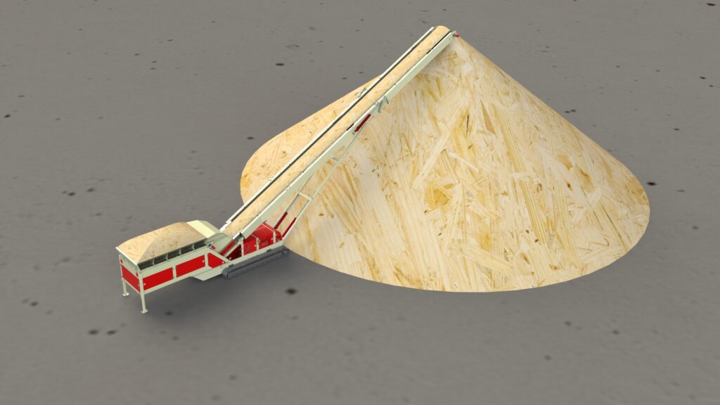 Der MH 5680 ist ein raupenmobiles Förderband, welches für die Aufhaldung von Materialien wie Mulch, Biomasse, Holzschnitzel, geschredderte Paletten, Holzpellets, Grünabfälle, Palmkernschalen usw. geeignet ist. Es kann direkt von Radladern, Greiferkränen, Holzzerkleinerern, Schreddern, Siebmaschinen oder Trommeln beschickt werden.