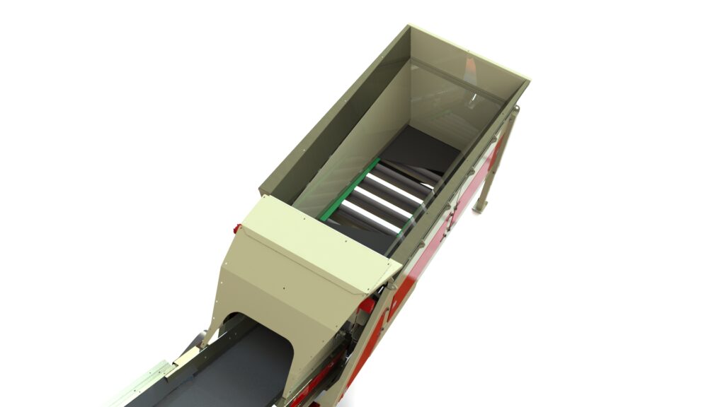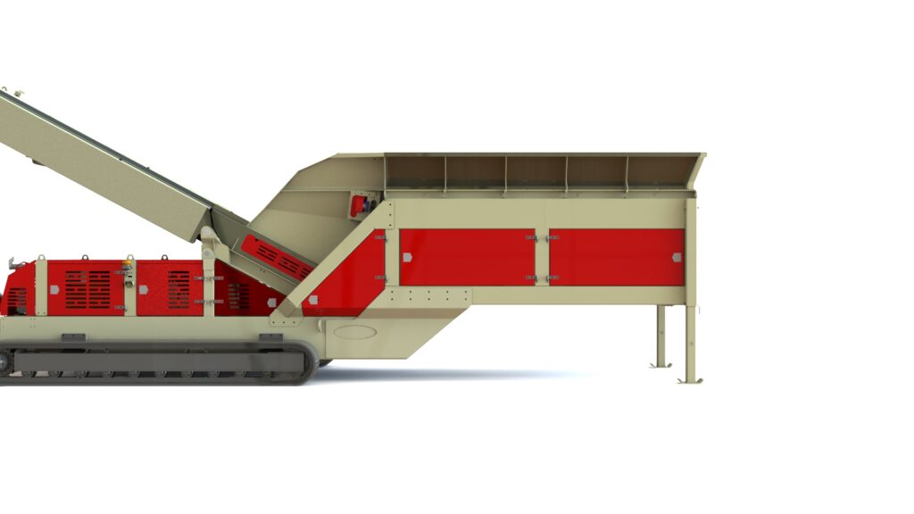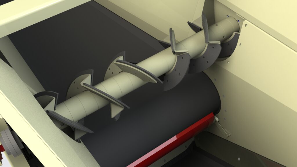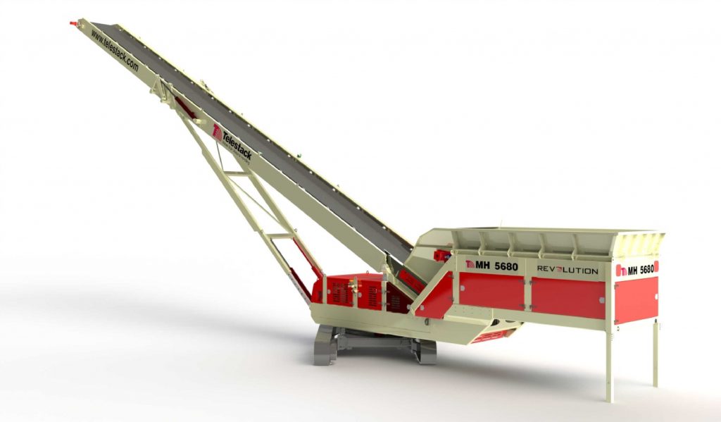Der MH 5680 hat ein 1400 mm (56″) breites Aufgeberband und steile 70° Trichterseiten. Diese Merkmale maximieren die Trichteröffnung, damit das Material ungehindert auf das Steigband fließen kann. Eine rotierende Schnecke am Auslauf belüftet und entwirrt schwierige Materialien und reguliert den Fluss auf das Steigband. Das Gerät ist auf der Baustelle sehr mobil und vermeidet doppeltes Handling, wodurch die Gesamtkosten für den Betreiber sinken.